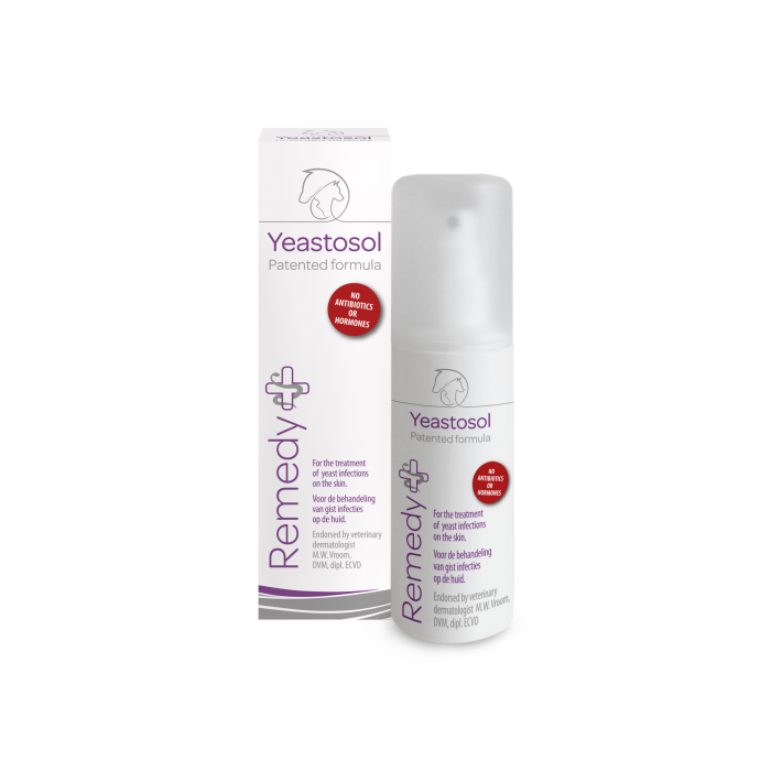 Yeastosol is een spray die geen hormonen of antibiotica bevat. De spray is eenvoudig te sprayen op de tussenteenhuid, de oksels of de liezen. Dit kost erg weinig tijd. De meeste honden accepteren dat goed en zeker wanneer de spray voor het wandelen wordt toegepast, gaan de honden er niet aan likken.